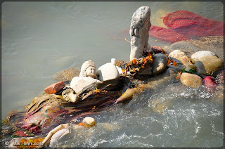 Chaque soir, à la tombée du soleil, il y a une ceremonie dans un autre temple, sur le bord du gange, il parait que « Vishnou » à laissé son empreinte de pied