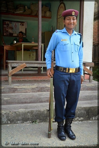 Juste après le premier portique, j’arrive sur un « check point » de l’armée Népalaise.