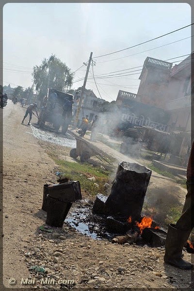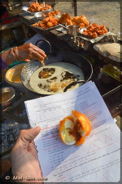 Apres Butwal, la pause ptit dej fut de bouffer un oeuf réchauffé dans de l’huile, elle même réchauffé au feu de bois, dans une feuille de cours de mathématique pour assiette….. euh….