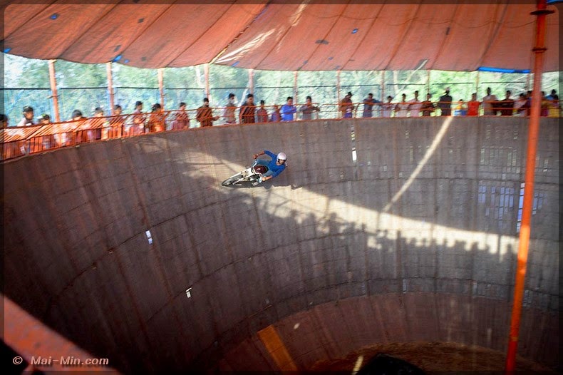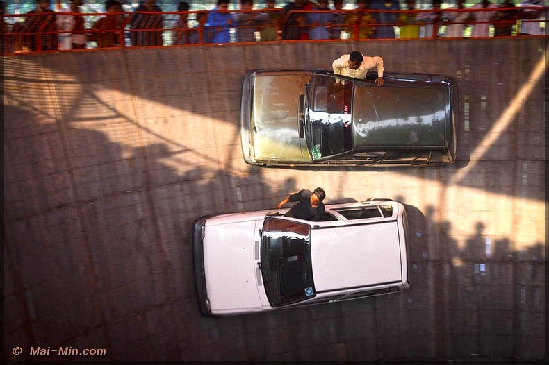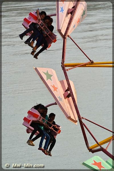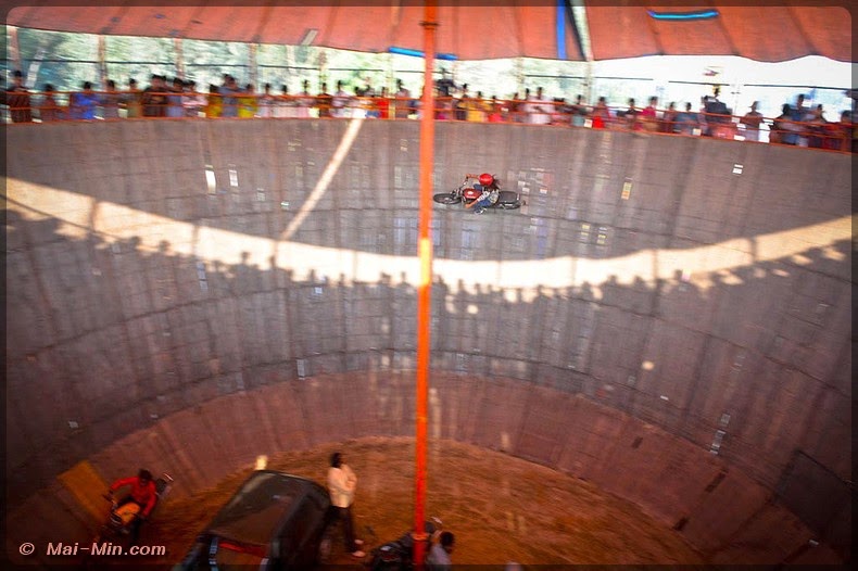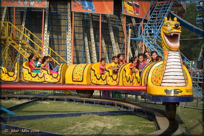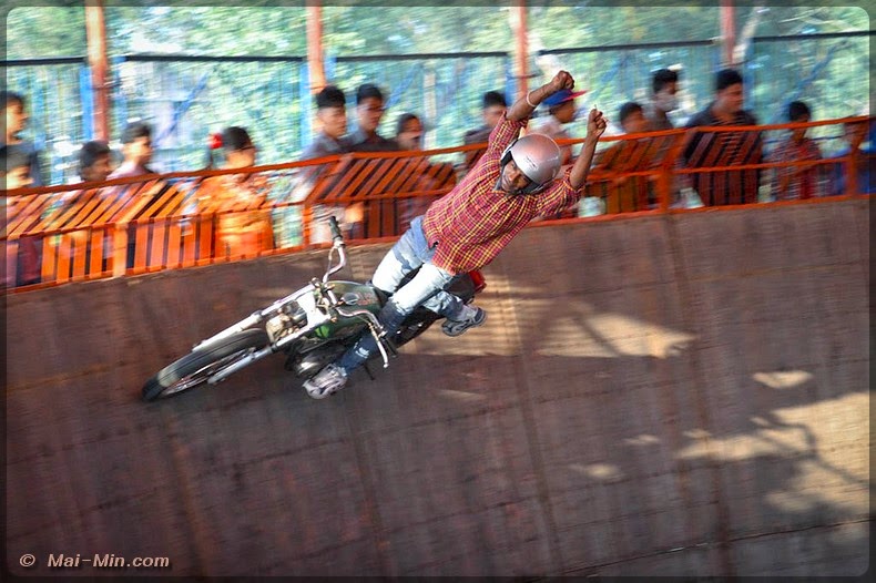 Une attraction attire mon oeil, la piste infernal, 70 roupies l’entrée. Il va falloir monter un escalier qui permet d’accéder en haut d’une fosse….tu vas comprendre.