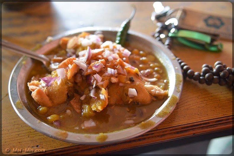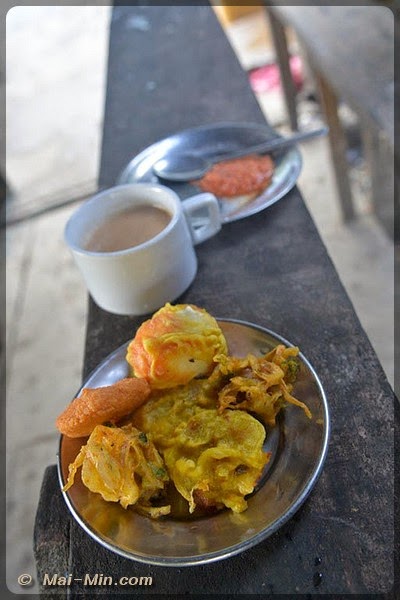 La petite pause rituel, « chai » et quelques mets que l’on me propose, essentiellement des légumes cuit dans une pâte et un oeuf