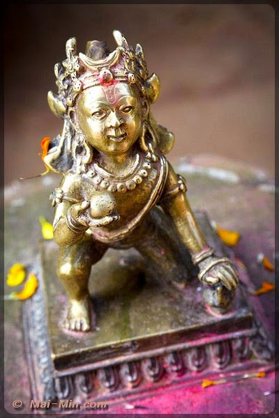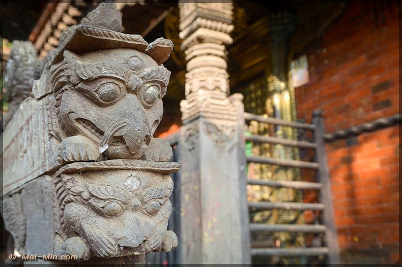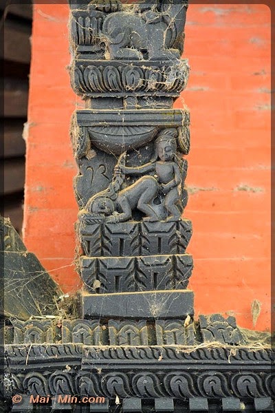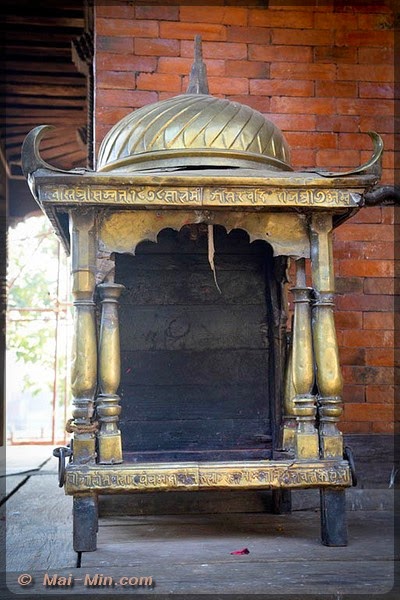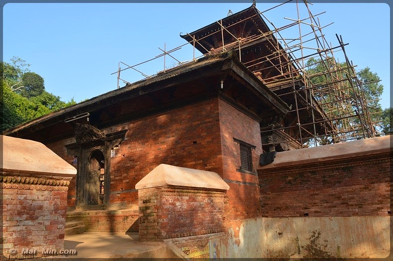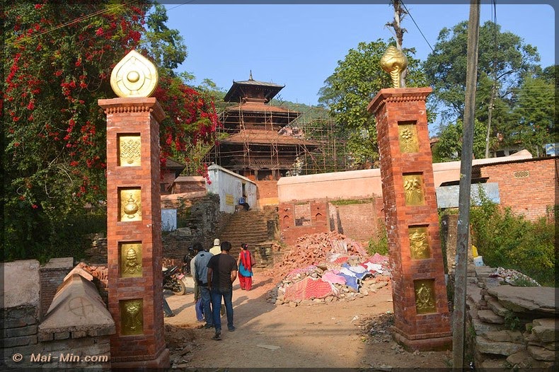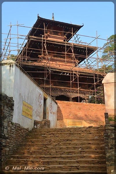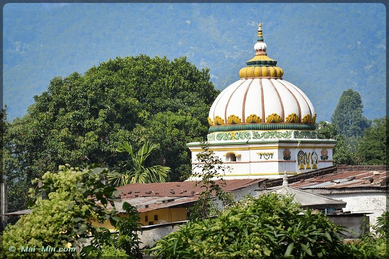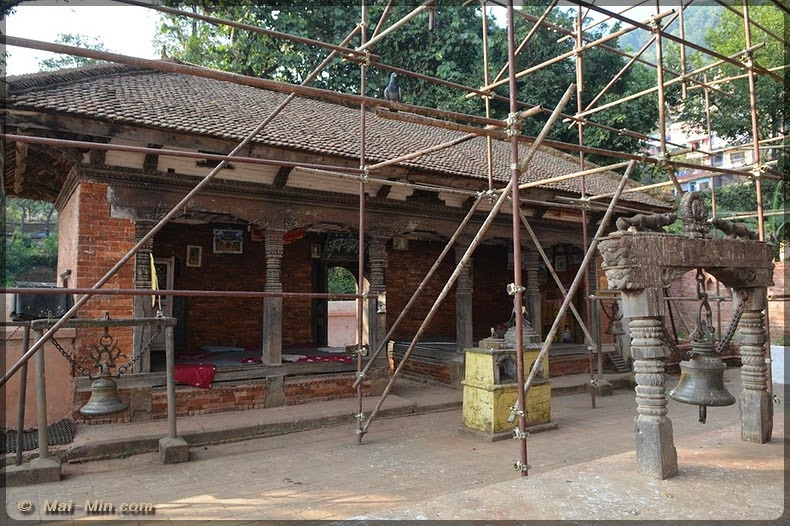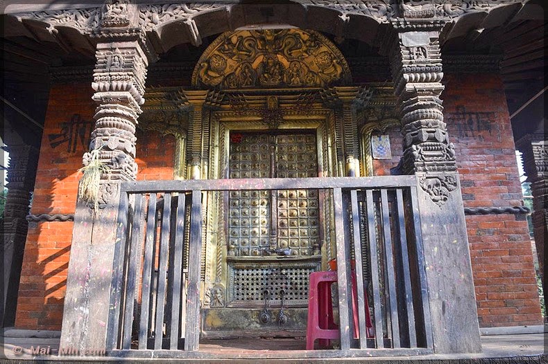 « C’est une pagode classique sur trois étages, est considéré comme l’un des plus beaux hors de la vallée de KTM. Il s’orne de bois finement sculptés, dont de superbes portes et des étais aux motifs érotiques. Il fut construit en 1806 par Aman Singh Thapa, le général qui annexa Tansen au Népal. »