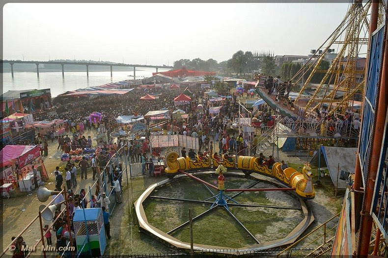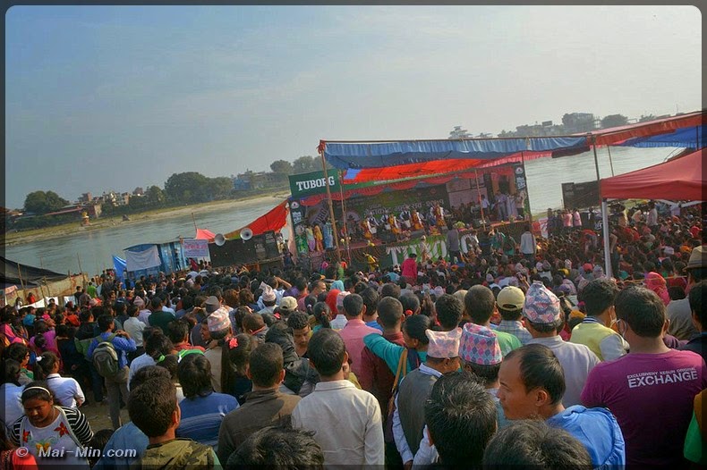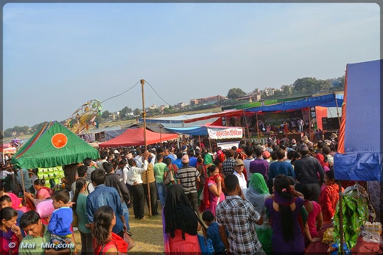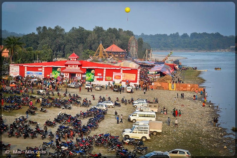 « …est un ancien site sacré, mentionné pour la première fois dans le Skanda Purana (Skanda était le fils de SHIVA, ce Purana expose les principes du culte de Shiva). c’est un très bel endroit entouré de collines, doté d’une large plage de sable et de plusieurs temples et sanctuaires ombragés, dominant les eaux tourbillonantes….la jonction des rivières affluents du Gange revêt toujours une signification religieuse particulière pour les hindous…de très nombreux hindous de hautes castes viennent ici finir leur jour, avant d’être brulés sur les berges…toutes sortes de rites religieux y compris les mariages , se déroulent à Devghat, occasionnant de grands rassemblement familiaux. »
