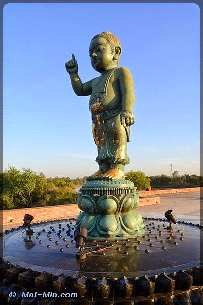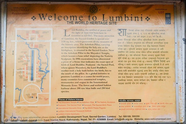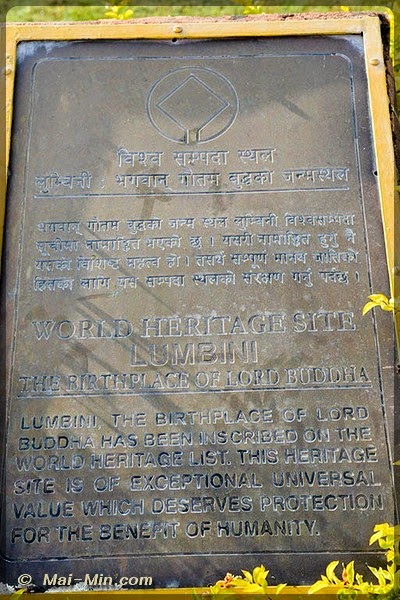 « …serait le lieu de naissance de Siddhartha Gautama, le fondateur du bouddhisme, connu sous le nom de Bouddha ou « l’éveillé ». Le fait est confirmé par une inscription gravée sur une colonne érigée par le grand empereur Ashoka, 318 ans après l’événement, et par la présence de nombreux vestiges. »