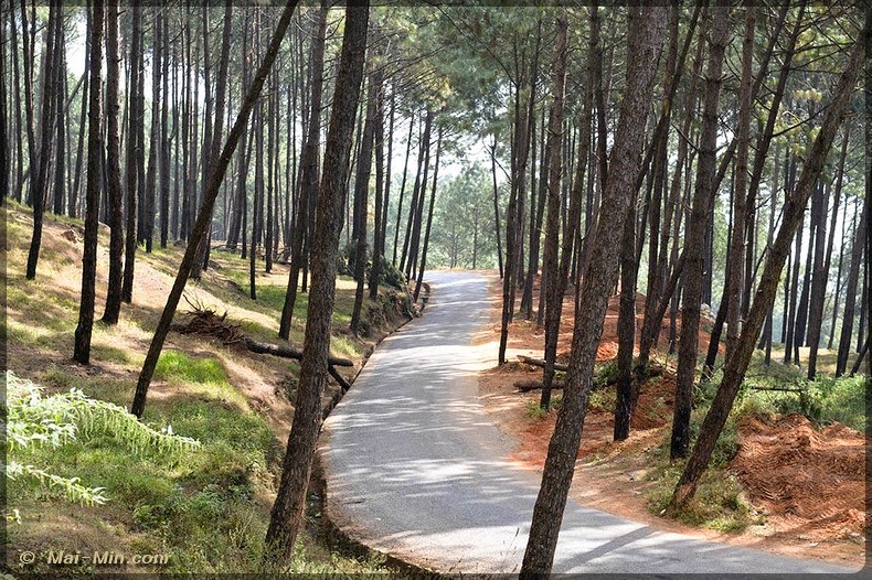 La route commence a me faire sortir de Tansen vers les cimes, en passant, mate les pins, la foret