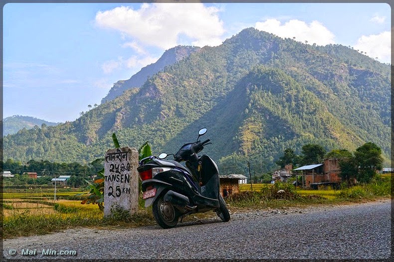 Je me la régale dans un décors magnifique qui monte et descend durant 80kms. J’arrive sur Tansen en fin de matinée, ville flanquée sur les flancs d’une suite montagneuse.