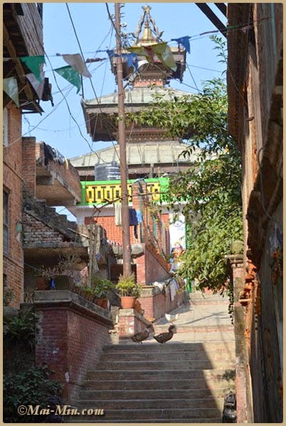 « …à environ 7kms de Banepa, autrefois à la jonction d’importantes routes commerciales, le village abritait un palais royal sur sa place principale. Aujourd’hui endormie, la cité relativement bien préservée reste tout à fait intéréssante avec ses nombreux temples dont l’un pourrait etre le plus ancien du Népal. »